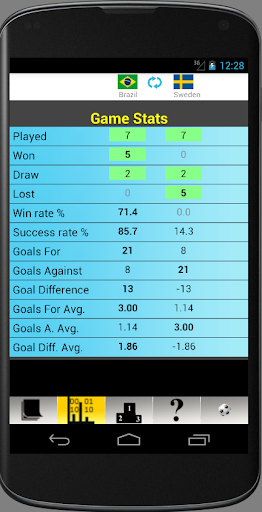 ========================= Alguns dos estatísticas apresentados em Várias seções do aplicativo são estatísticas de futebol padrão como ganhos, desenhos, perdas, objetivos para, objetivos contra etc. Campeonato do mundo de futebol Guru também tem muitos incomuns mas interessantes como