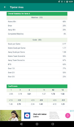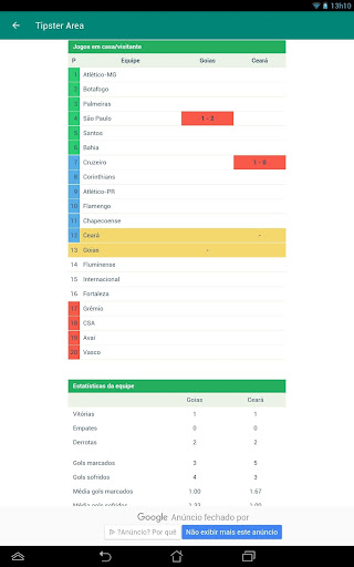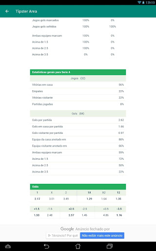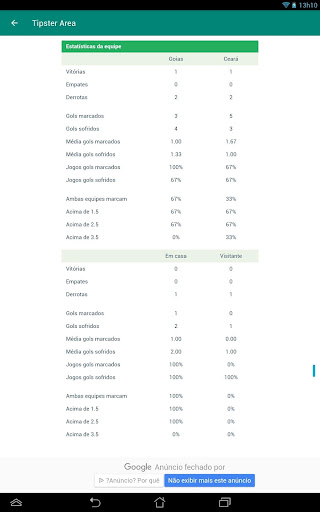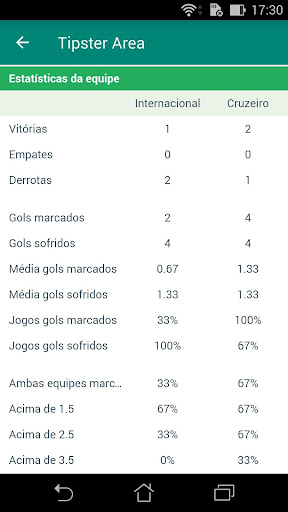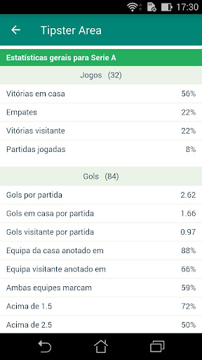Tipster Area é uma aplicação para estatísticas de futebol que mostra os jogos por data e possui estatísticas muito detalhadas e uma tela para comparar por indicadores: