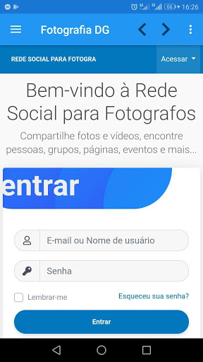 Compartilhe fotos e vídeos, encontre fotógrafos, serviços, grupos, páginas e mais... Juntos seremos mais fortes, venha fazer parte!