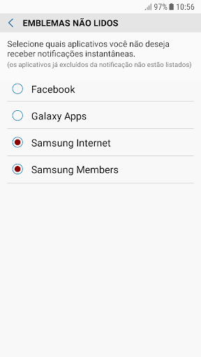 • notificação instantânea para os emblemas não lidos recebidos de aplicativos compatíveis e os relativos a exclusões de aplicativos personalizáveis (
