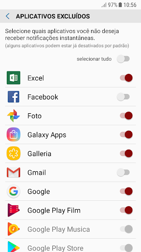 • exclusões customizáveis para todos os aplicativos de usuários instalados