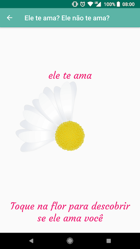 - Por fim, quisemos dar um ar divertido ao aplicativo com o jogo "Ele me ama ou não?"