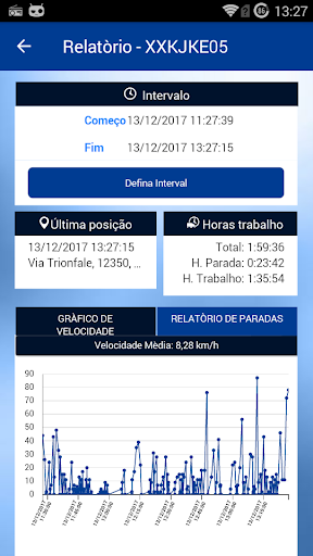 A Aplicação permite rastrear e localizar o veículo com o dispositivo integrado em tempo real, verificando o histórico de percursos; bloqueio de ignição em caso de roubo; verificando manutenções e prazos. Através da seção Relatórios, é possível analisar paragens, percursos e velocidade.