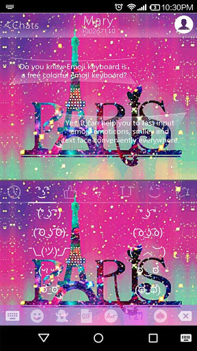 Quem quer que você quer uma simples galáxia paris kk emoji keyboard tema, por favor experimente este tema Galaxy Paris KK emoji especialmente projetado para os amantes de Paris. Galaxy Paris Emoji Theckboard Theme Faça o seu teclado muito bonito como sua escolha. Não perca este novo teclado emoji para o tema Galaxy Paris!. Desfrute de digitação engraçada com o tema do teclado do emoji de Paris de Galaxy Paris.