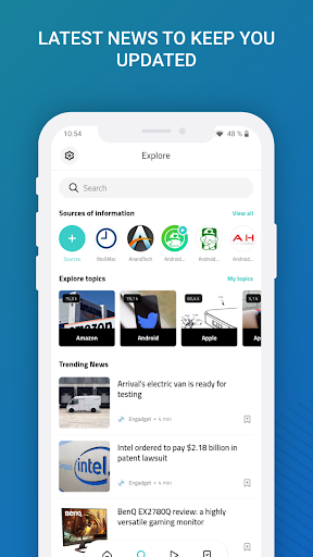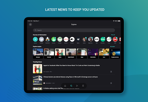 Quer encontrar notícias em um determinado tópico ou fonte? Geektech permite que você procure por tópicos ou fontes para ler ou seguir.
