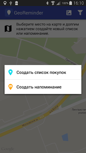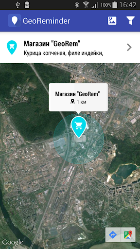 Georeminder allow you to create shopping lists and reminders, which notifies the application when you are nearby.