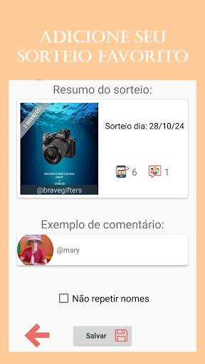 ✅ Mantenha registro dos sorteios que está participando e nunca se esquecerá de cobrar seus prêmios!!!