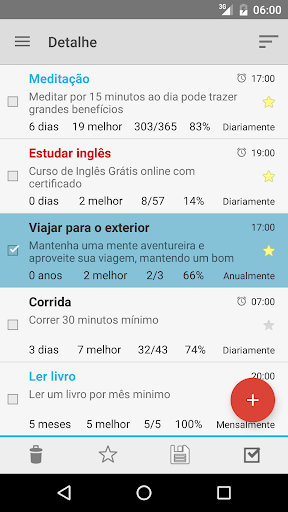 Hábitos/metas diárias, semanais, mensais e anuais.