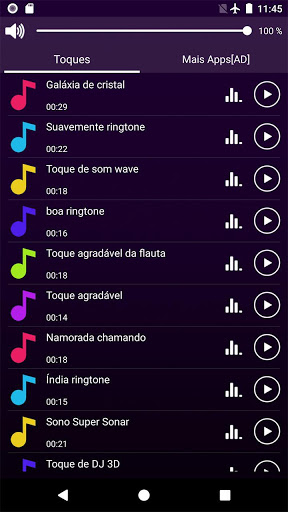 Abra este aplicativo muito bom toques, você pode pressionar o botão "play" para ouvir os tons de música MP3.