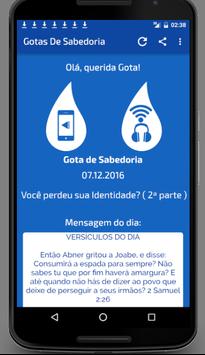 O projeto Gota de Sabedoria visa levar uma porção (gota) da palavra de Deus, diariamente aos seus ouvintes.