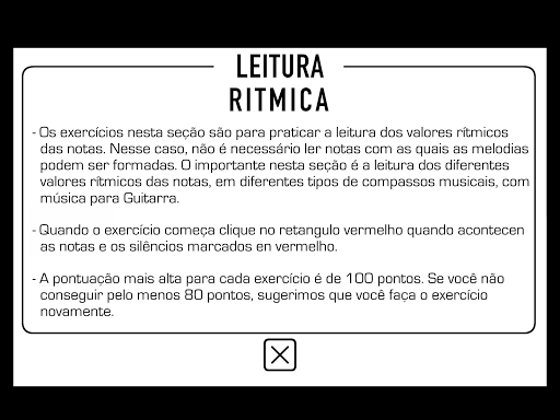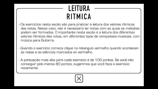 Este aplicativo foi criado para ajudá-lo a desenvolver a sua capacidade de ler música de guitarra à primeira vista.