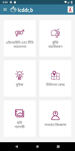 ICDDRB HIV Info App fornece informações sobre doenças HIV e DST.Você também pode jogar questionário para verificar seu conhecimento.Além disso, você encontrará sua localização do Centro de Tratamento de Neareset para mais ajuda.