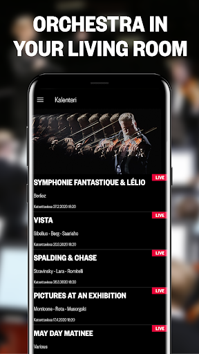 The HKO Screen app brings concerts by the Helsinki Philharmonic Orchestra to your home sofa or with you anywhere you go. Even if you can’t make it to the Helsinki Music Centre, you can watch and listen to our concerts on the app – whenever is most convenient for you.