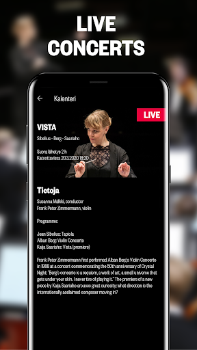The live pre-concert talk (in Finnish) will help to put you in the mood. During the interval you can also meet more interesting people and hear what goes on behind the scenes. You can also return to the concert recordings and interviews at any time.