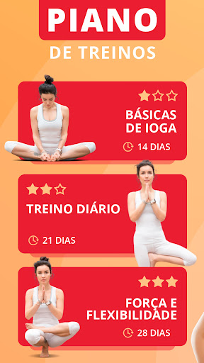 ✓ 3 programas de treinamento: fitness básico, posições diário de 5 minute yoga workouts, e 10 minutes hatha ioga alongamento, para reduzir ansiedade. Mais de 60 lições diferentes. Este é um plano detalhado de 30 dias e 3 meses.