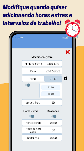 Fácil de controlar seu trabalho por horas e conhecer sua folha de pagamento ou salário.