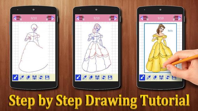 This Apps is a step by step instruction which will teach you How to Drawing Disney Princesses Characters ( such as Belle, Cinderella, Jasmine). Like a personal art teacher, it will teach you how to draw dozens of different objects step by step and create amazing design, you can choose a character that you like and start to draw it.