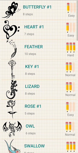 An application that is very easy to learn by all users, I will add more how to draw draw tattoos characters to this application all the time so make sure you come back often to see what's new here.