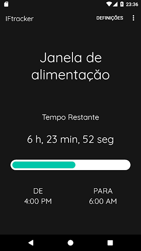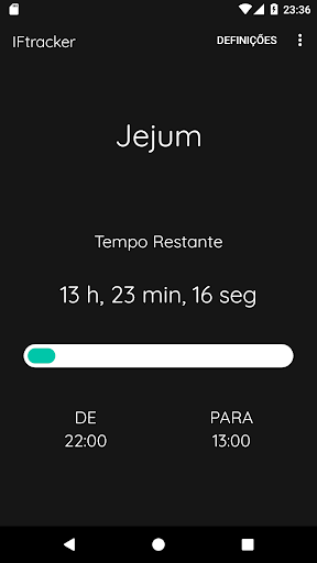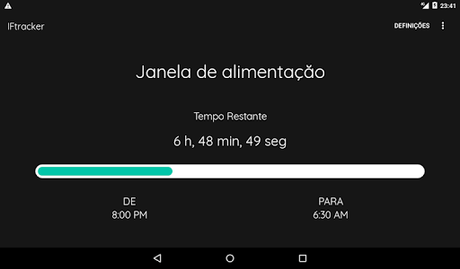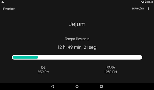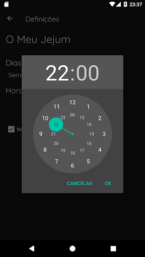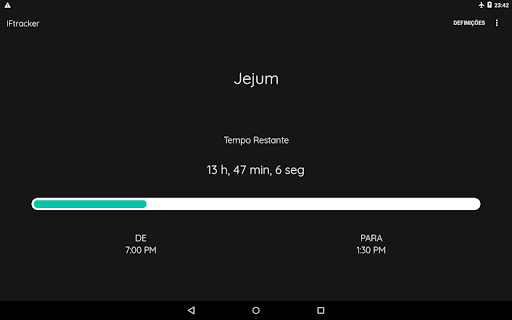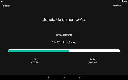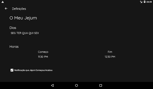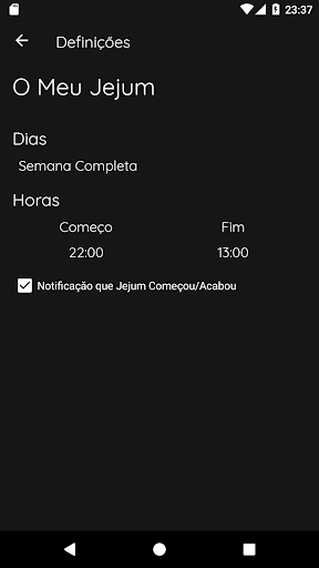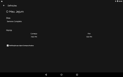 Pode configurar os dias e horas do seu jejum nas definiçőes.