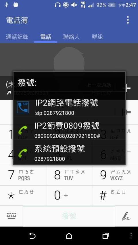 IP3 mobile extension application software to provide users with a dial-up does not have to change the habit of blocking phone users to use the native keyboard to dial the phone, when you press the dial button to call, IP3 App automatically provides three options, the user can freely select a desired call through the Internet, or call 0800 fee Mobile phone line call, if this time forget when the road barrier is automatically hidden network call option, only 0800 telephone line charges and call.