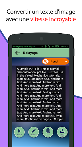 “Conversor de imagem em texto, PDF OCR, Digitalizar e traduzir” não é como simples tradutor de imagens, mas um aplicativo exclusivo e avançado com recursos de captura de texto em PDF, PDF OCR, PDF para texto, tradutor de arquivos PDF e texto para fala. um livro de áudio. Todos os recursos mencionados são muito fáceis de usar, basta abrir a câmera e tirar uma foto do texto que você deseja traduzir e ouvir como um audiolivro. Você também pode adicionar arquivos PDF do seu armazenamento móvel, imagens da galeria e arquivos de texto para pegar texto.