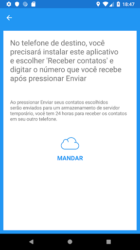 Transfira seus contatos em segundos de qualquer telefone (iPhone ou Android) para qualquer outro telefone em segundos. A Transferência Imediata de Contatos fornece duas maneiras de enviar contatos sem nenhuma conta de inscrição ou de nuvem: