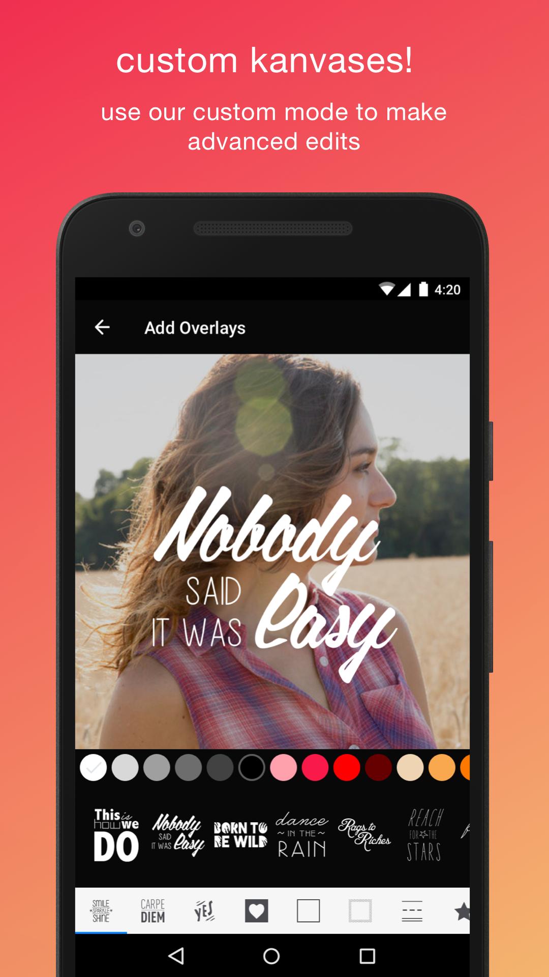 Post full size photos, gifs & video to Kanvas without having to crop out any of your content. Works for both orientations and for all background sources - Camera roll, tumblr, giphy & more!
