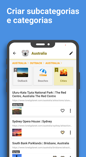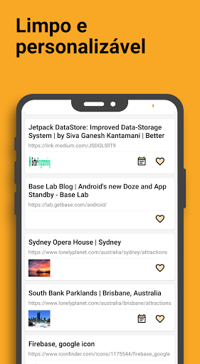 Salve seus favoritos fácil e rapidamente de qualquer lugar. Salve tudo que você descobrir: livros, artigos, compras, notícias, receitas... Gerencie todas elas num único aplicativo e as visualize depois com uma interface altamente customizável.