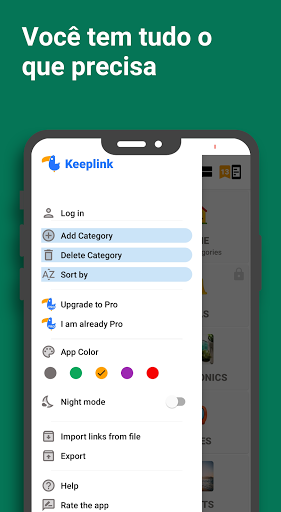 Você pode customizar uma variedade de coisas para encaixá-las no seu gosto, e.x. categorias, plano de fundo, cor do app...