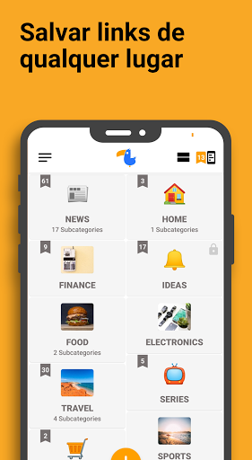 - Organize facilmente links dentro de categorias com os seus ícones prediletos.