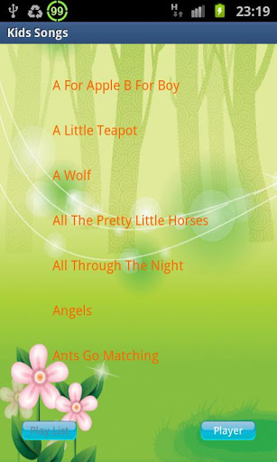 100 very nice, famous kids songs.Believe you and your kids will like it.Songs listing:A For Apple B For BoyA Little TeapotA WolfAll The Pretty Little HorsesAll Through The NightAngelsAnts Go MatchingBaa Baa Black SheepBaby ByeBalloonsBarbie GirlBettyBilly BoyBingoBirdies CradleBlow The Man DownBoy GirlBridgeCheerClap Your HandsColour SongColoursCradle SongCuckooDeck The HallsDid You Ever See A LassieDing Dong BellDo Re MeDo Re MiDown By The StationEtEverbody JumpFive Little DucksFollow MeGood Morning To YouGood NightGrandmas ClassesHands UpHappy BirthdayHappy HomeHappy New YearHello How Are YouHere We Come A CarolingHere We GoHickory Dickory DockHome On The RangeHumpty DumptyHush Little BabyI Had A Little Nut TreeI Want To FlyIf You Are HappyI39;ve Been Working On The RailroadJimmy Crack CornJingle BellsJoy To The WorldJust For YouKeyLazy MaryLet Everyone ClapLittleLittle Cabin In The WoodLittle Green FrogLittle SnowmanLondon BridgeLong Long AgoLullabyMary Had A Little LambMerry ChristmasMerry Go RoundMommyMore Than I Can SayMorningMy BalloonMy BonnieNo Room At The InnOhsuzannaOld BlueOld Brass WagonOld King ColeOld Macdonald Had A FarmOn The Way To SchoolOver In The MeadowPussy cat Rain Rain Go AwayRed River ValleyRing A Ring Of RosesRose, Rose I Love YouRound The ClockSanta Claus Is Coming To TownSay HelloSea ShellsShalala LalaShe39;ll Be Comin Round The MountainShoo FlySilent NightSing TogetherSkip To My LouSleepSleepingSmallSongSwanee RiverTake Me Out To The Ball GameTeddy BearTeddybearTen Little IndiansThe Farmer In The DellThe First NoelThe Hokey PokeyThe LibraryThe More We Get TogetherThe Muffin ManThe North Wind Doth BlowThe SeasonsThe Sore Feet SongThe TrainThe Wheels On The BusThe World Is SmallThese Are Mother39;s Knives And ForksThis Is The WayThis Little PigThis Little Pig Went TomarketThis Old ManThree Blind MiceThree Little KittensThumbelinaTigerTreeTwinkle Twinkle Little StarTwo Little BlackbirdsWe Are The WorldWe Wish You A Merry ChristmasWhat Is ThisWhats Your NameWhen I Was A Young GirlWhen The Saints Go Marching InWhere Do All The Daisies GoWinterYesidonodontYou Are Number OneYou39;re My SunshineKeywords: childhood, children songs, children, babies, songs, music, family, nanny, parents, QQ,WeiBo, educational toys.