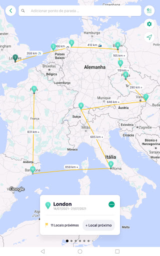 Um mundo tão grande. Tão pouco tempo. Por isso é importante não gastar tempo desnecessário com planejamento de rotas complicadas. Encontro novos pontos de paradas e locais próximos e os adicione à sua rota – planejar um trajeto de viagem nunca foi tão fácil. Ou nos permita inspirar você com novos objetivos.