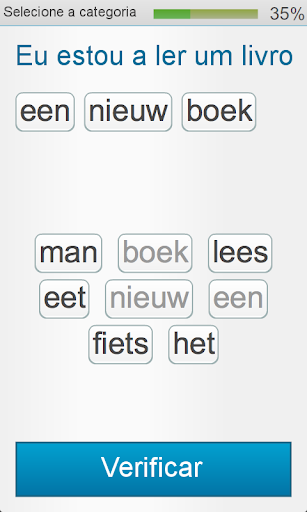 Aprenda holandês, reconhecendo palavras e imagens, encontrando a palavra que falta, completando e construindo frases.