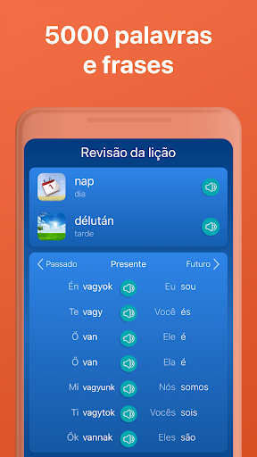 Se você quer aprender mais durante esse curso, apenas toque os verbos em húngaro e obtenha a conjugação completa na tela, incluindo a tradução. É mais rápido e melhor que um dicionário.
