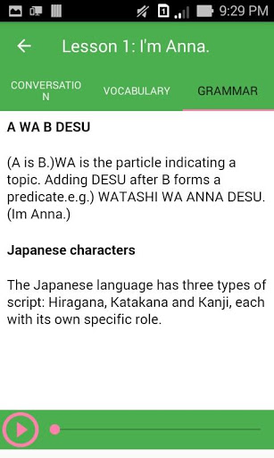 - Aprenda a gramática japonesa.Cada lição tem alguns pontos gramaticais.