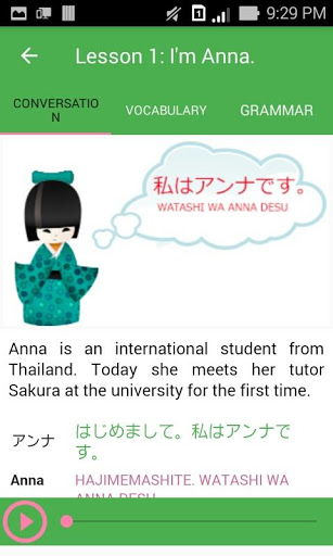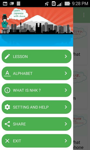 - Aprenda os japoneses facilmente através de aulas de áudio.Esse recurso precisa de uma conexão com a Internet, mas você pode aprender a comunicação japonesa mais fácil.