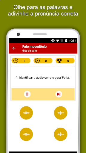 O aplicativo de aprendizado de macedônio off-line tem 2135 palavras com 55 categorias. Contém pronuncias, imagens e fonética de palavras para facilitar a aprendizagem. Alterar idioma de base, Salvar aprendizado em EduBank, jogos de áudio, Potpourri e jogos de retenção são as principais características do aplicativo Fala macedônio.