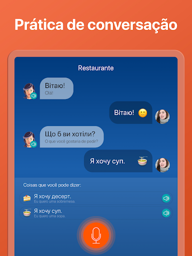 Conversação é a razão principal para tomar esse curso grátis. Ela lhe ajudará a construir um vocabulário de ucraniano com os substantivos e verbos mais usados, e a falar ucraniano claramente. As crianças também vão amar o Mondly.