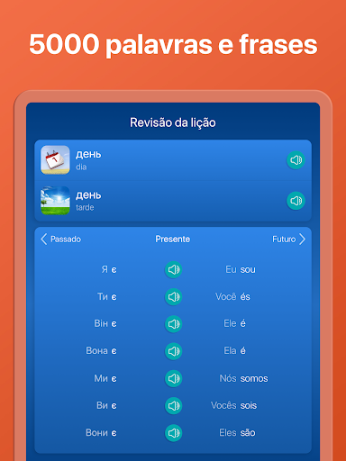 Se você quer aprender mais durante esse curso, apenas toque os verbos em ucraniano e obtenha a conjugação completa na tela, incluindo a tradução. É mais rápido e melhor que um dicionário.
