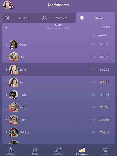 O App usa relatórios inteligentes, para que você possa sempre seguir o seu progresso. Construa o seu vocabulário passo a passo e torne-se melhor a cada dia.