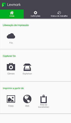 O Lexmark Print permite enviar documentos e imagens diretamente do dispositivo móvel para uma impressora Lexmark conectada à rede.