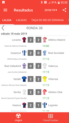 Obter os resultados mais rápidos e estatísticas dos jogos de futebol na Espanha!