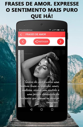 Além de tudo isso, nosso APP Teste de Amor conta com uma seção com mais de 300 belas fotografias com mensagens, citas e poemas para compartilhar. Nela você encontrará: