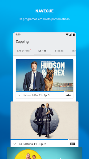 Zapping – acesso a todos os conteúdos que estão a passar na emissão agrupados por temáticas (ex.: Séries, Filmes, Documentários, Infantil…).