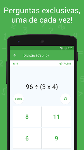 Você é um estudante e deseja melhorar suas habilidades matemáticas para melhorar seu desempenho em um exame? Você quer um jogo de perguntas de matemática legal para seus filhos? Ou você é um expert em matemática e está procurando por exercícios de raciocínio para melhorar sua matemática diariamente? Você veio ao lugar certo. Math Master é um jogo de perguntas de matemática grátis desenvolvido para todas as idades! Oferece um conjunto de testes desafiadores para todas as operações aritméticas e matemáticas. Selecione qualquer livro da sua escolha, comece a jogar e suba de nível no seu perfil do jogo. Resolva problemas de matemática e seja o Mestre da Matemática!
