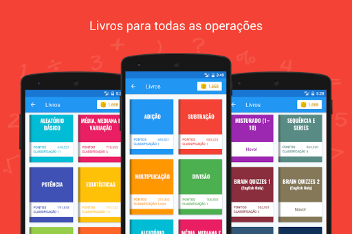 Cada livro tem 10 capítulos exclusivos com níveis de dificuldade crescentes. Desafie-se e atinja a pontuação máxima por operação/livro.