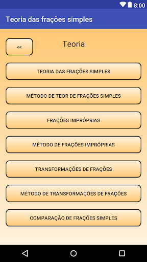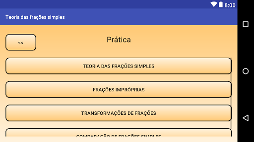 Esta aplicação destina-se a estudar a teoria das frações simples. O aplicativo contém seções de teoria, prática e testes. Também neste programa é a capacidade de manter estatísticas de teste para vários alunos.