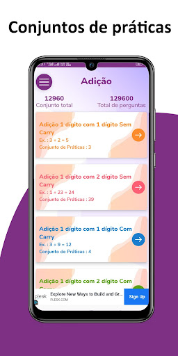 ✓ Adição (1 dígito, 2 dígitos, 3 dígitos, 4 dígitos)