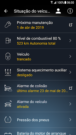 • Consultas de estado (por ex. quilometragem, pressão dos pneus, nível de combustível, etc.)