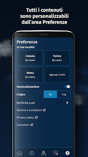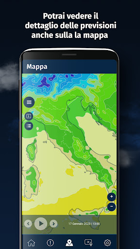 L "39; Aplicação oficial do serviço meteorológico da Força Aérea (www.meteoam.it) fornece informações meteorológicas previstas relacionadas a O território nacional